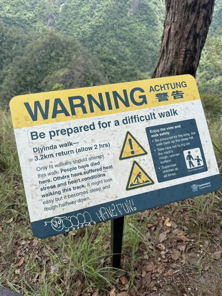 Allerdings dachte ich mir dann auch, jetzt wo ich schon hier bin, muss ich auch nach unten laufen… Auf dem Schild stand 2-3std hin und zurück – da dachte ich noch boah easy das machen wir! 10min in der Wanderung kommt ein Warnschild “genug trinken/Wasser mitnehmen, ruhiges Tempo, Steine sind rutschig” und das beste “hier sind Menschen vor Hitze gestorben – super, richtig motivierend, aber jetzt hab ich ja schon angefangen… :)